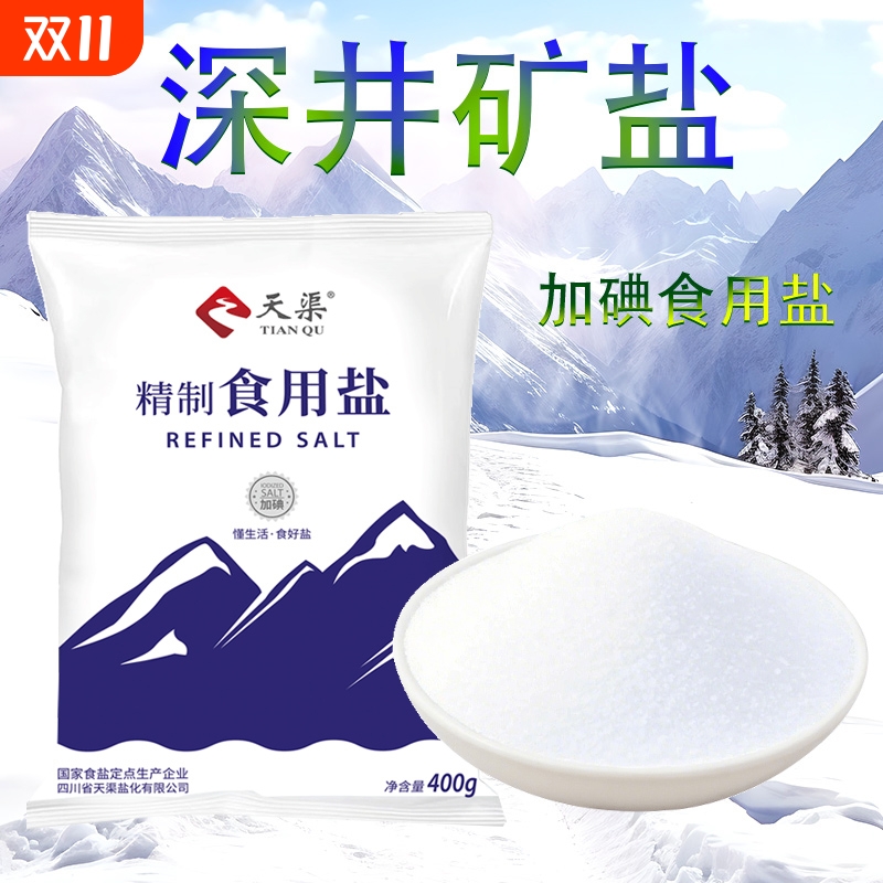 四川精制加碘食用盐细盐400g家庭盐巴商用家用炒菜调味食盐深井盐