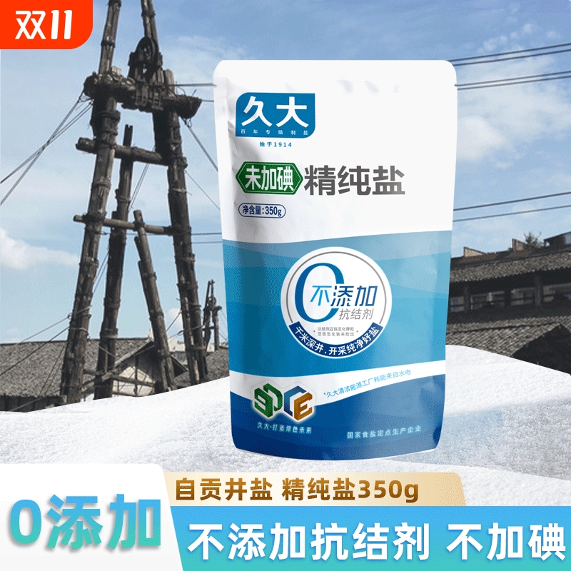 久大精纯盐350g未加碘无碘盐食盐无抗结剂自贡井盐精制盐精纯盐