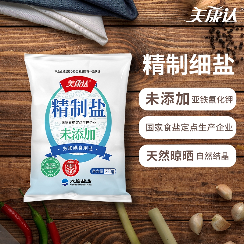 美康达未加碘精制盐220g炒菜食盐家用烹饪海盐无抗结剂细盐调味盐