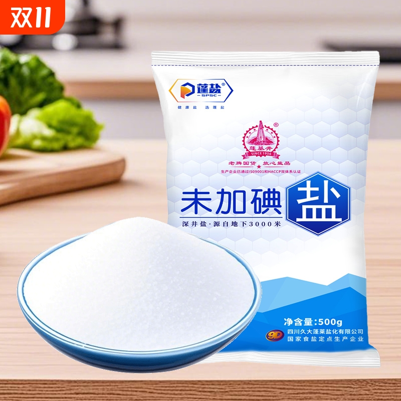 四川家用食用盐500g深井盐未加碘食盐矿盐精制细盐炒菜盐巴无碘