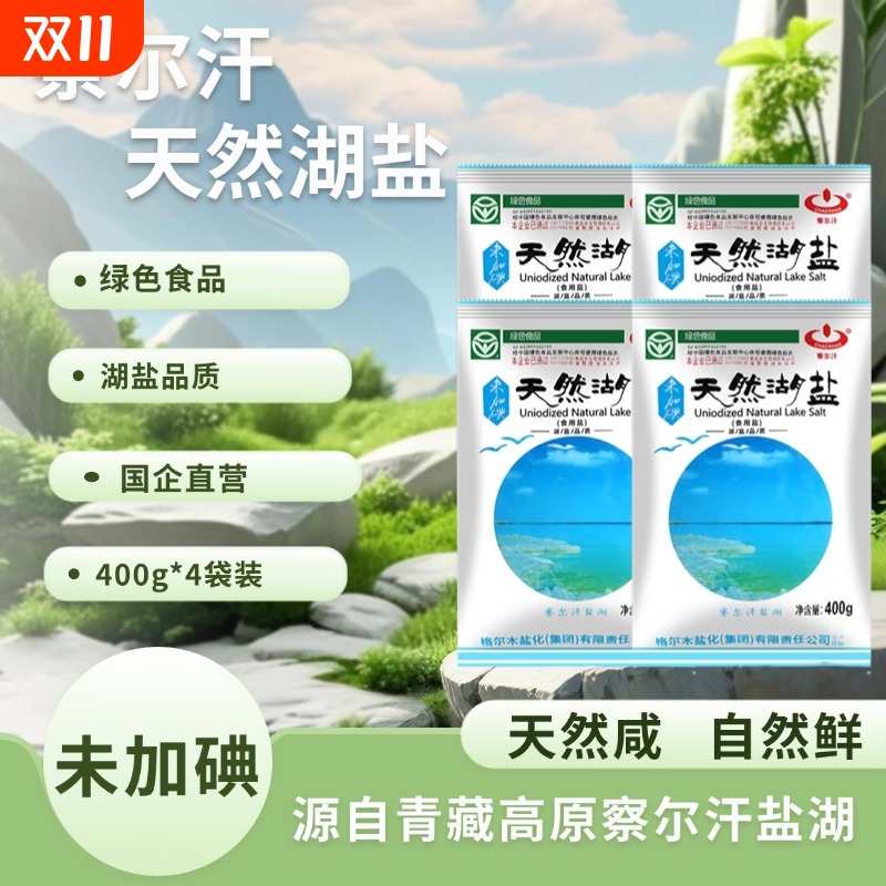茶卡未加碘天然湖盐家用食用盐调味品无抗结剂无添加食盐400g/袋