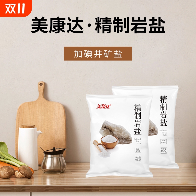 美康达精制岩盐400g食用盐厨房调味食盐干净井矿盐炒菜用盐