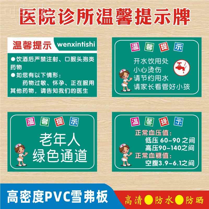 医院诊所温馨提示牌禁止吸烟请勿随地吐痰测血压饮酒后严禁用头孢过敏
