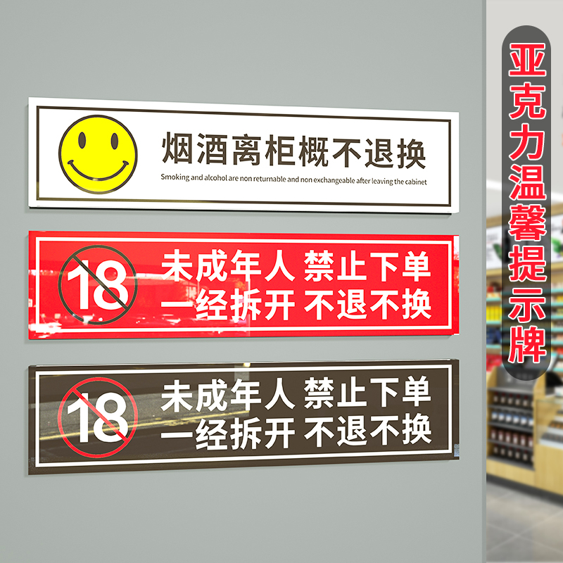 未成年人禁止下单一经拆开不换亚克力提示牌警示牌标牌贴牌禁止向未成
