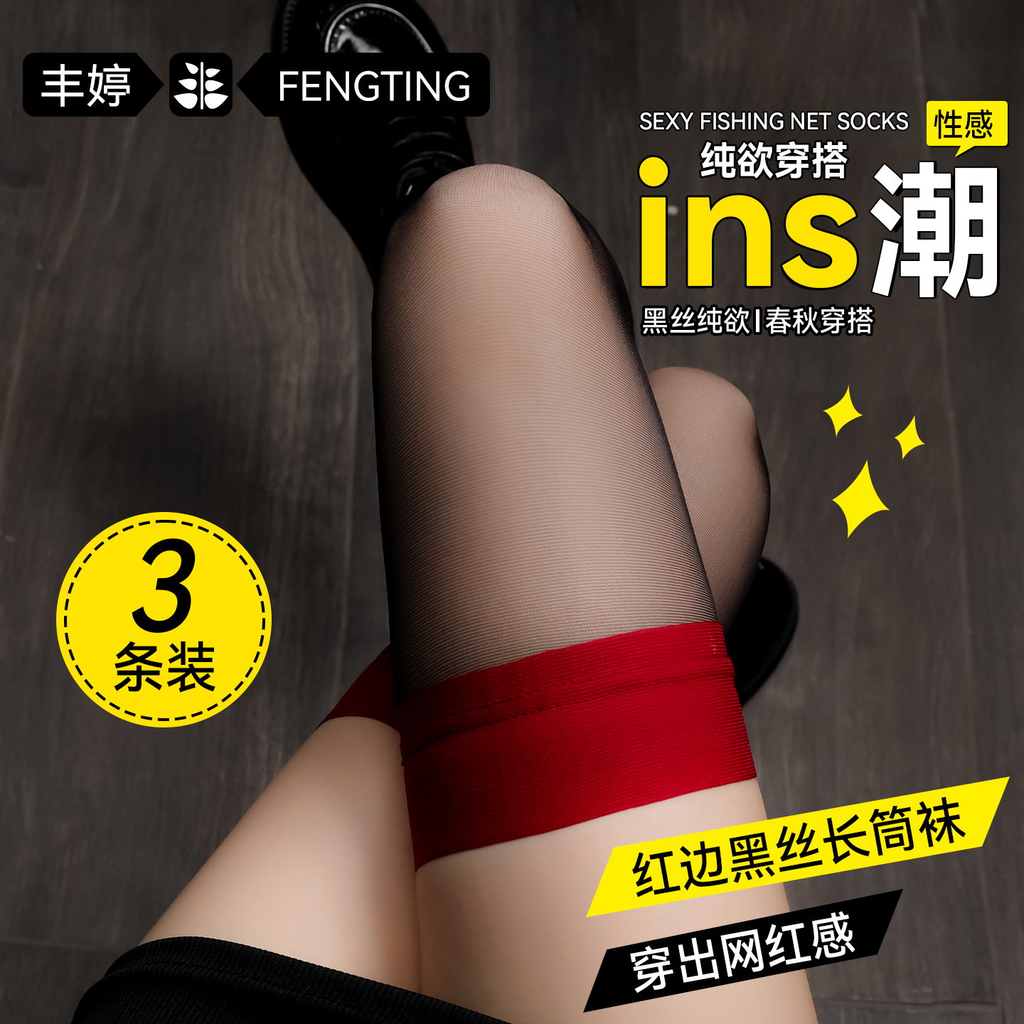 红边黑丝袜女性感纯欲高筒过膝