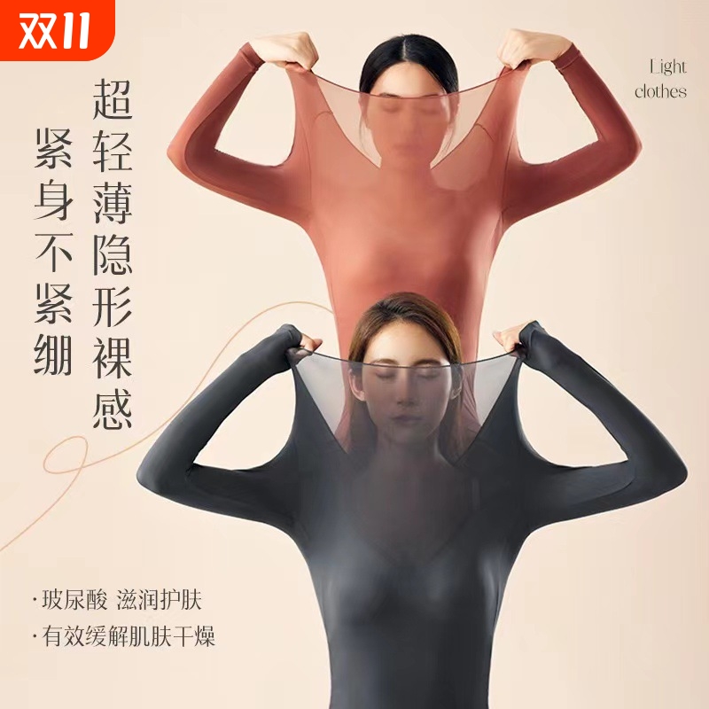 秋冬超薄肌玻尿酸底衣美肤保暖衣套装贴身高弹保暖无痕肌底内搭