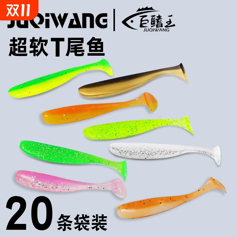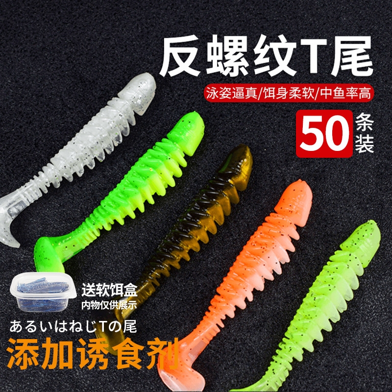 路亚饵新款光面T尾软饵根钓软虫微物鱼饵铅头钩鳜鱼鲈鱼翘嘴假饵