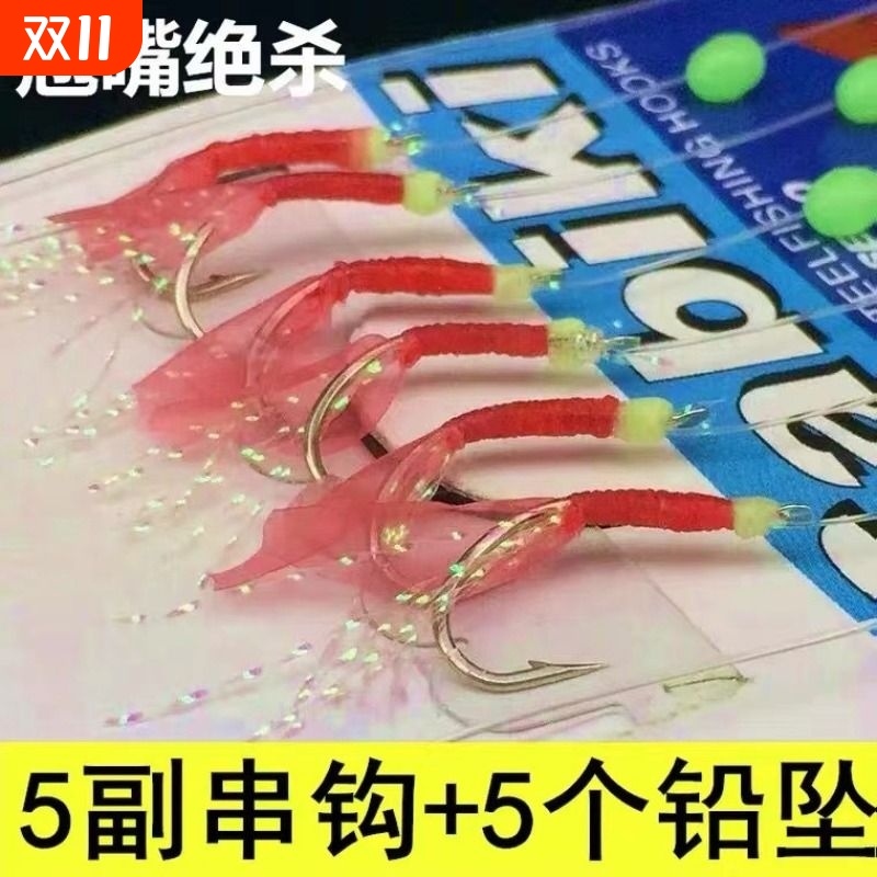 包邮白条翘嘴串钩鱼钩仿生虾皮鱼皮钩胶皮路亚丸世钩鲤鱼夜光鲈鱼