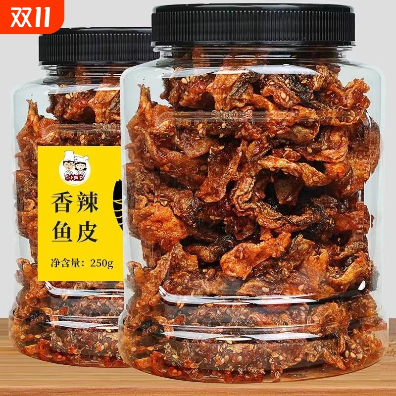 香辣鱼皮250g大包装海鲜零食香脆干甜辣麻鳕鱼皮开袋即食解馋好吃