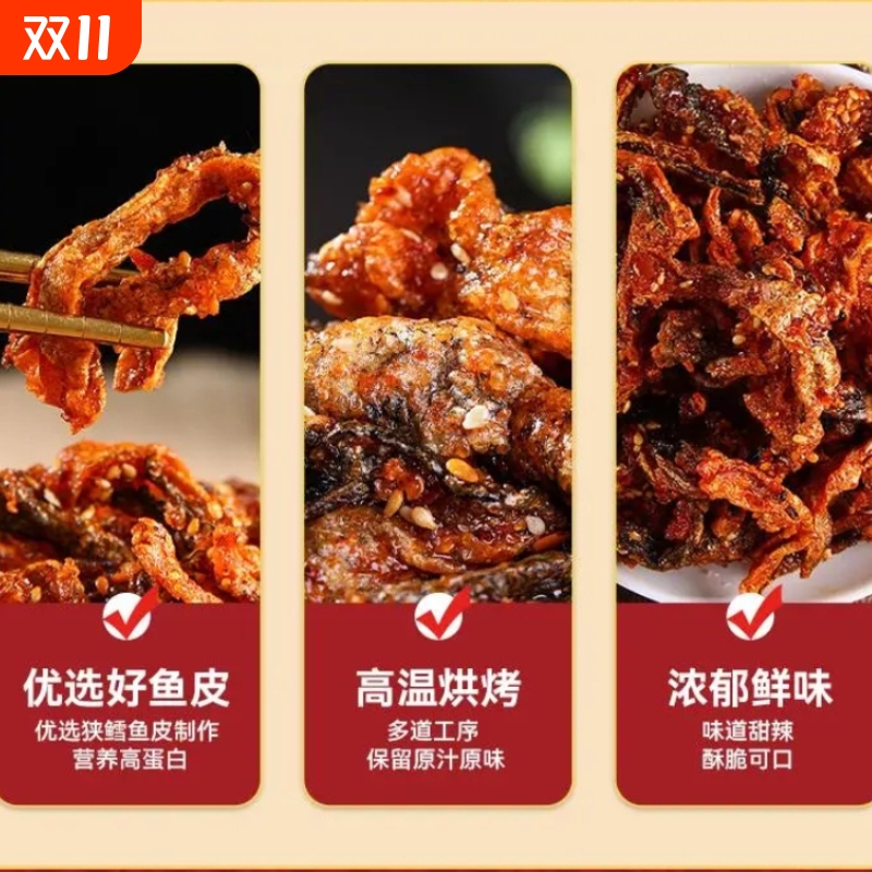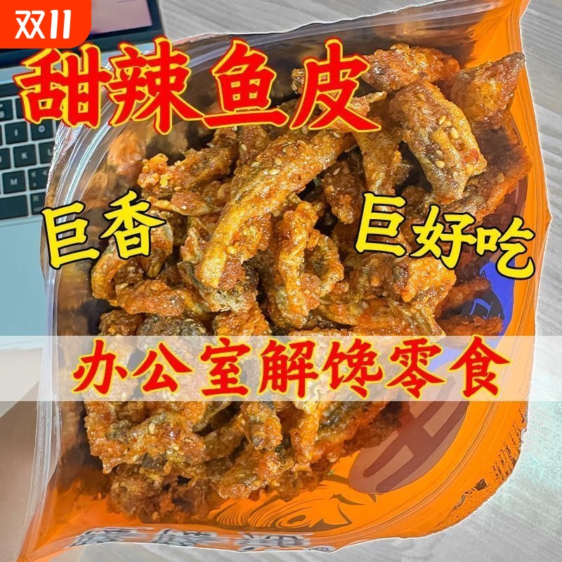 香辣鳕鱼皮即食鱼零食油炸小鱼仔口味鱼海鲜风味网红鱼皮甜辣休闲
