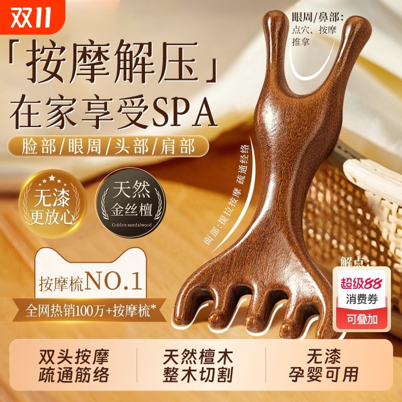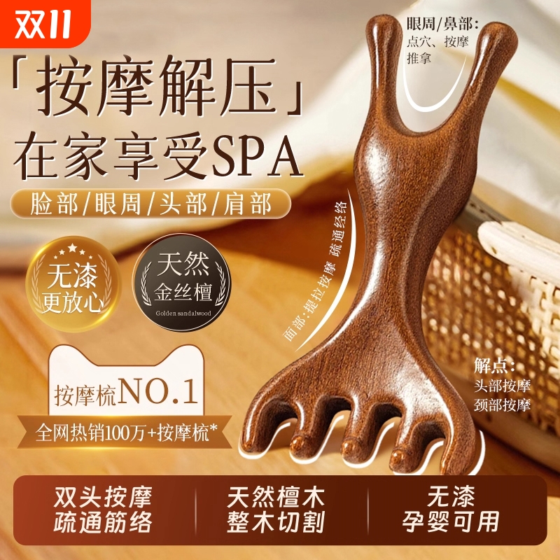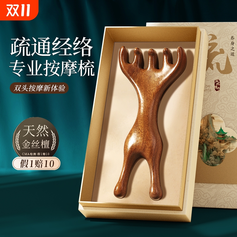 【礼盒装】金丝檀双头鹿爪按摩梳