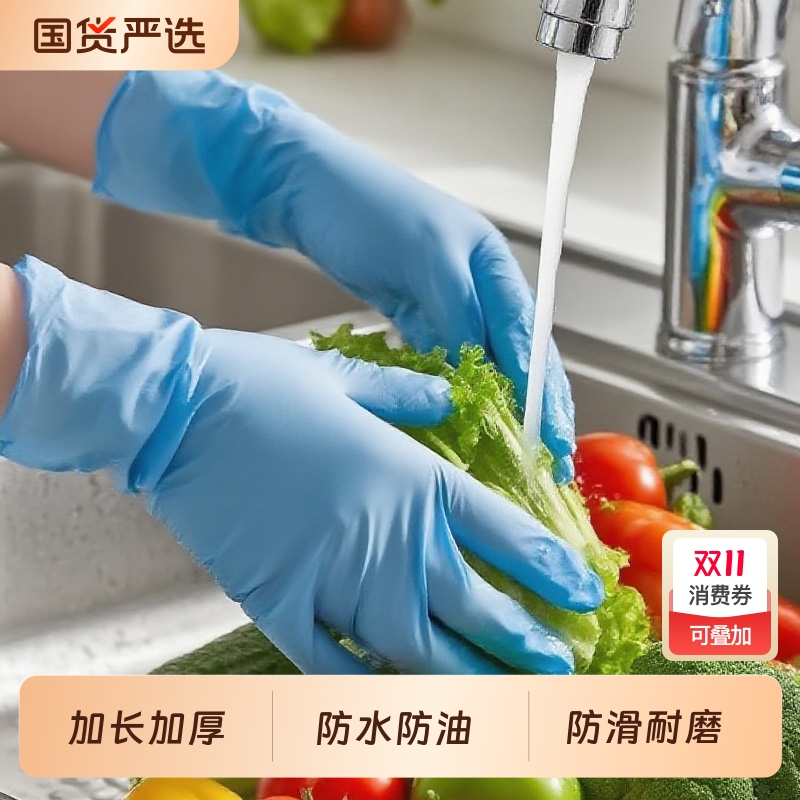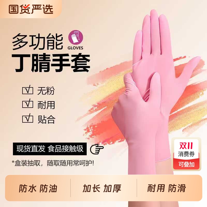 丁腈手套厨房洗碗耐用家用清洁女橡胶家务干活专用一次性加长防水