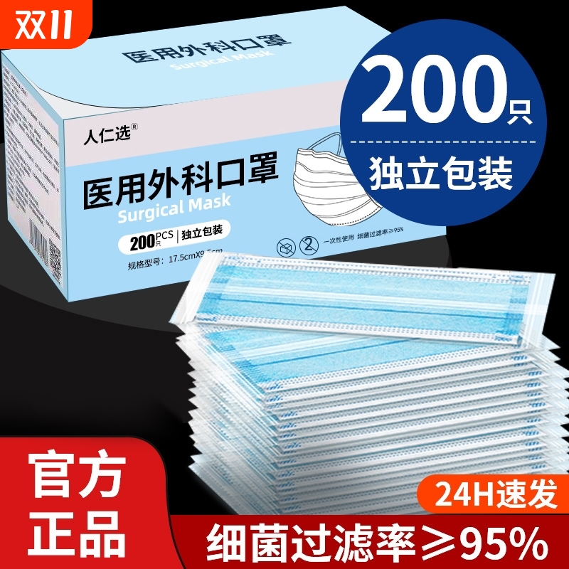 医用外科口罩一次性医疗蓝白黑色成人灭菌正品三层独立包装熔喷布