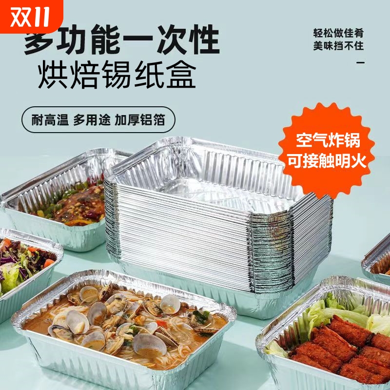 方形锡纸盘空气炸锅专用食品级烧烤盘家用一次性锡铝箔碗烘焙烤箱