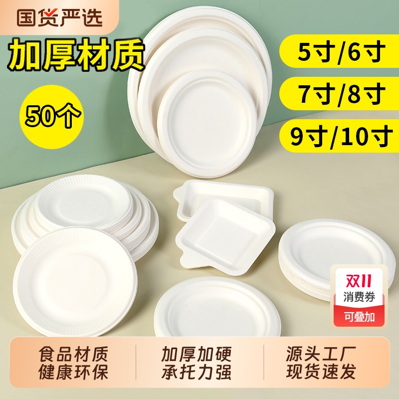 一次性加厚餐盘纸浆盘圆纸碟56789寸纸盘子蛋糕菜盘骨碟水果饺子