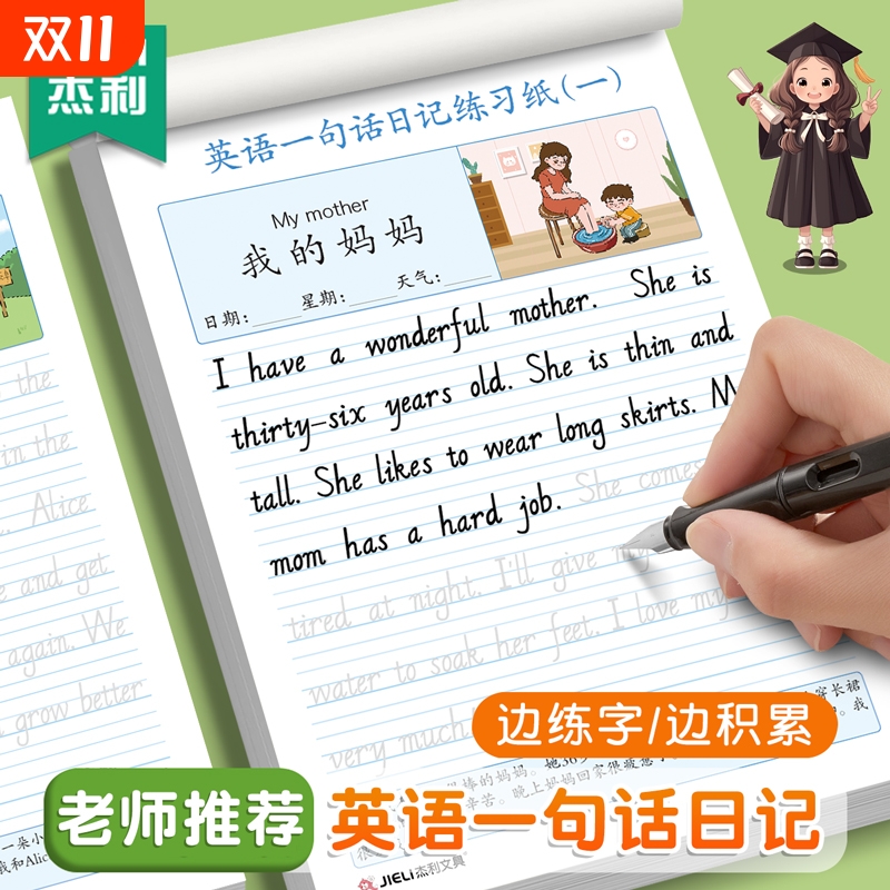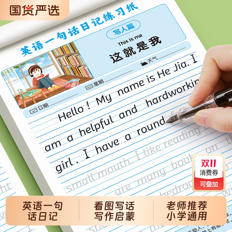 英语一句话日记练习纸写话本练字帖小学生二三四五年级每日一练每天英