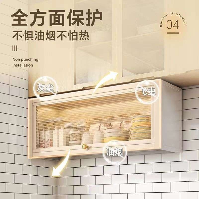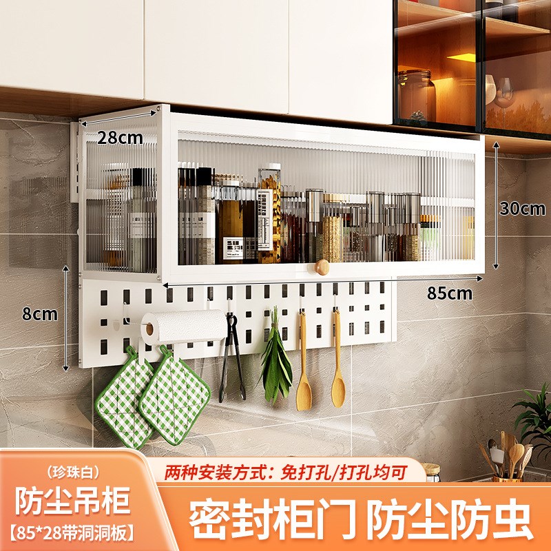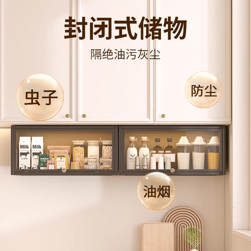 新款液压厨房吊柜置物架 壁挂式橱柜下方防尘收纳柜免打孔调料架