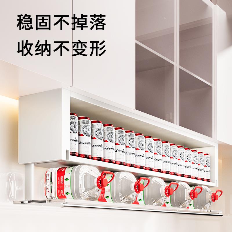 WBZ7厨房吊柜下置物架免打孔壁挂式橱柜下方下拉式壁柜墙挂式收纳
