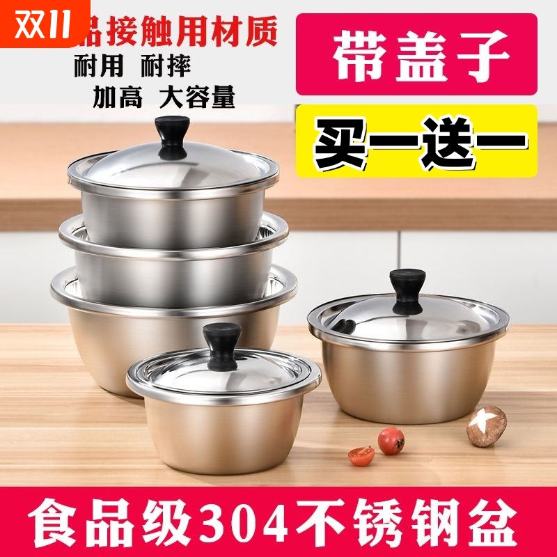 特厚食品用不锈钢盆子汤盆油盆油鼓调料盆猪油盆打蛋盆和面盆带盖