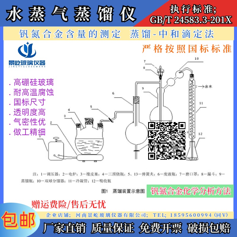 蒸馏装置 钒氮合金氮含量的测定 蒸馏中和滴定法水蒸气 蒸馏仪