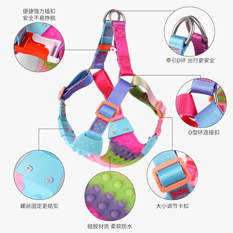 硅狗狗牵彩引绳中型犬可调节遛狗绳色胶宠物胸背带爆防冲狗链