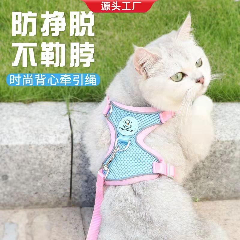 猫咪牵绳防背挣脱猫绳咪中小型狗狗猫胸小型犬狗狗外出遛猫引绳子