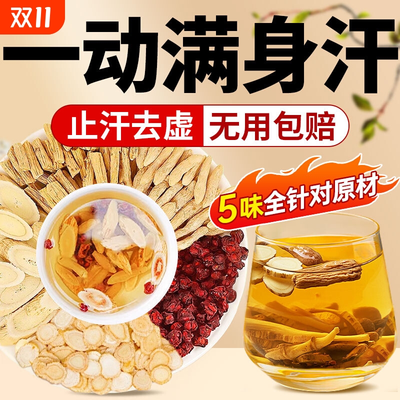 黄芪麦冬五味子茶红枣官方旗舰店出汗多止汗茶包泡水喝中组合药材