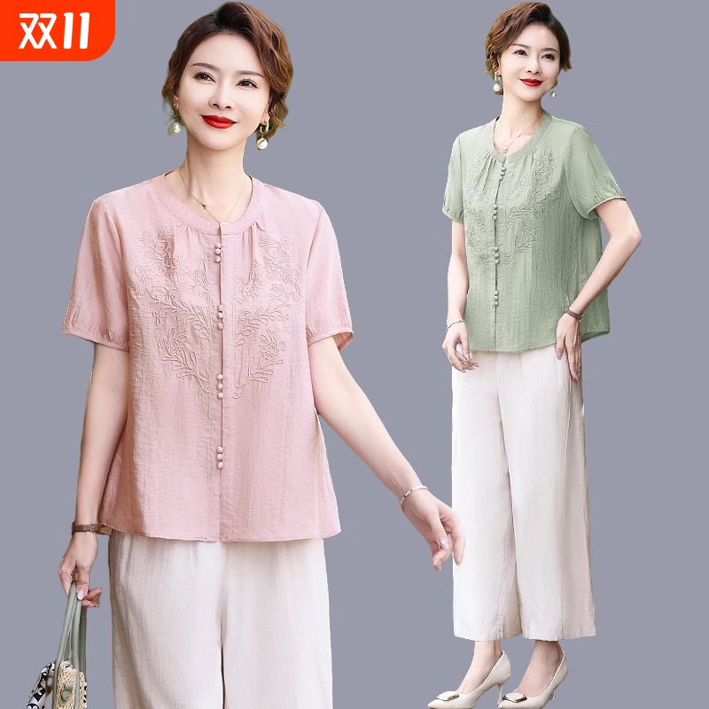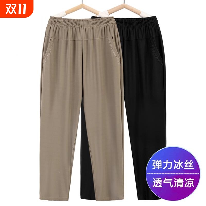 妈妈裤子夏季薄冰丝九分裤休闲裤