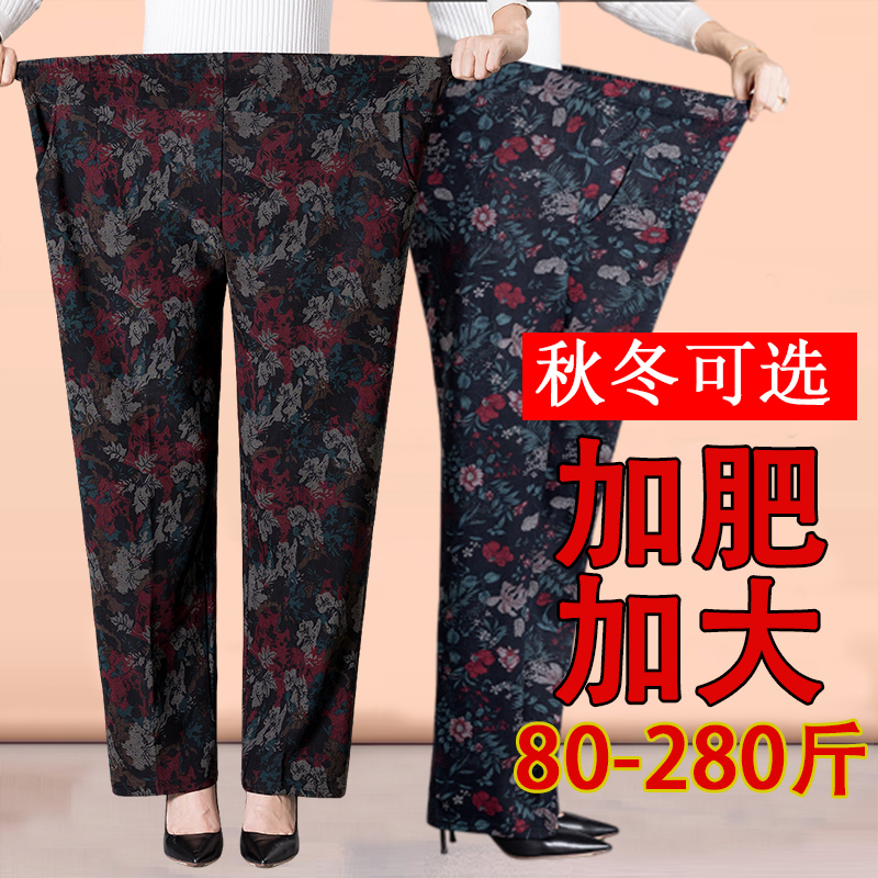 妈妈秋季裤子新款宽松休闲直筒裤中老年女裤加肥加大码奶奶装长裤