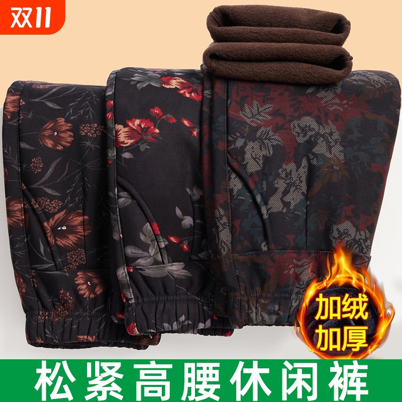 中老年人女裤春季花裤子奶奶春秋加肥大码长裤妈妈加绒加厚直筒裤