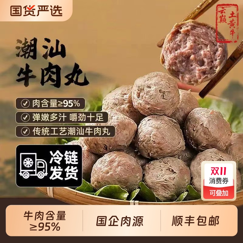 云巅土正宗汕头特产手打牛肉丸潮州手工牛筋丸火锅烧烤食材2斤