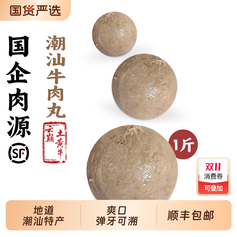 2斤潮汕特产汕头正宗牛肉丸牛筋丸零添加爆汁新鲜牛肉不混肉顺丰