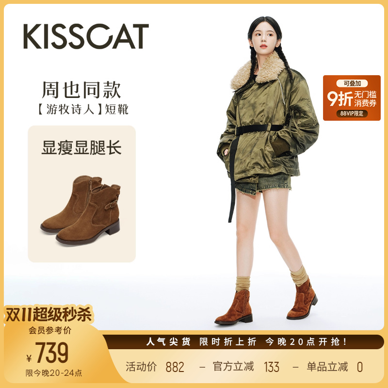 [周也/孟佳同款]接吻猫[游牧诗人]短靴25新美拉德西部时装靴踝