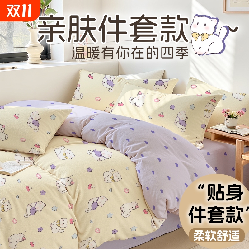 富安娜家纺轻奢高级感提花四件套新品床单亲肤可裸睡被套床上用品