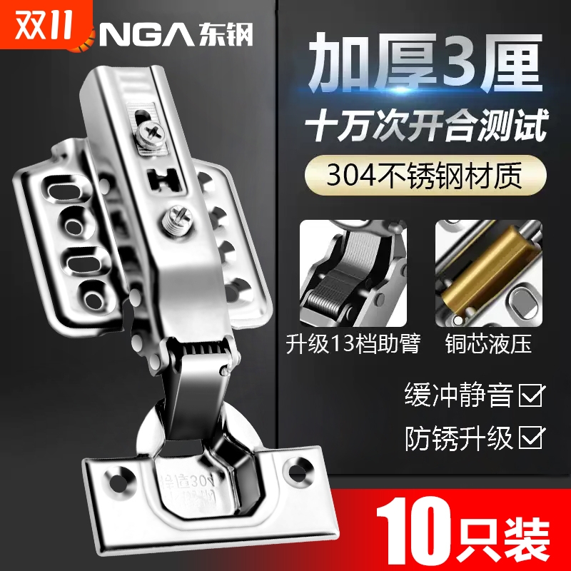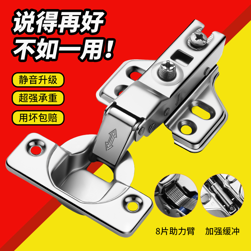 【铜芯】304不锈钢缓冲阻尼铰链橱柜门半盖中弯五金折叠飞机合页