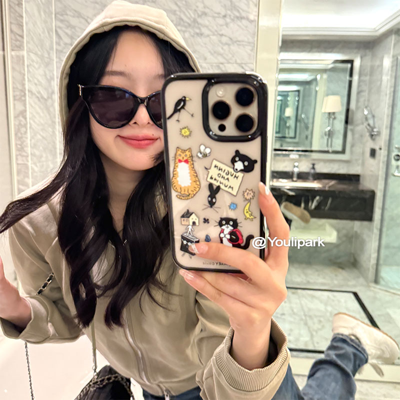 闪钻冲浪黑皮猫咪支架苹果手机壳