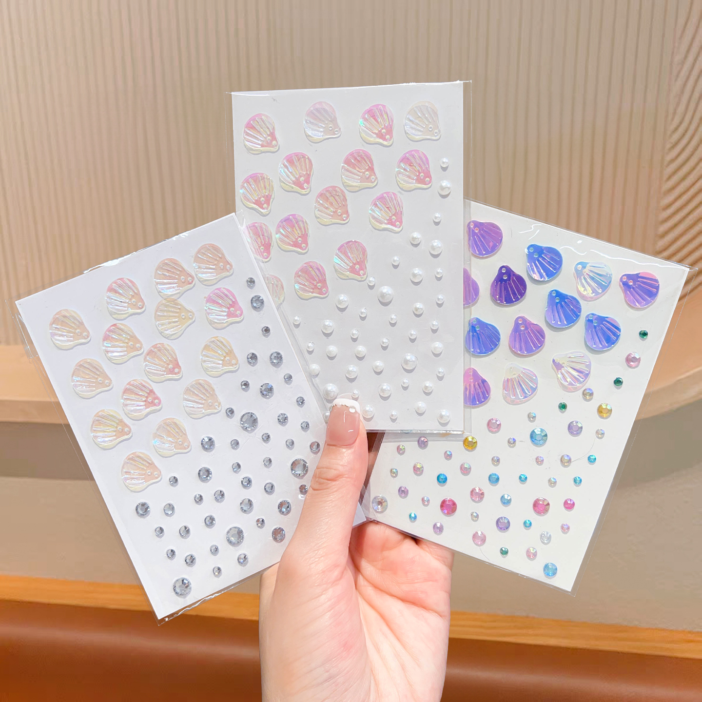 儿童脸上贴饰品小女孩贝壳水晶彩钻贴立体贴纸脸贴甜美舞台表演女童宝