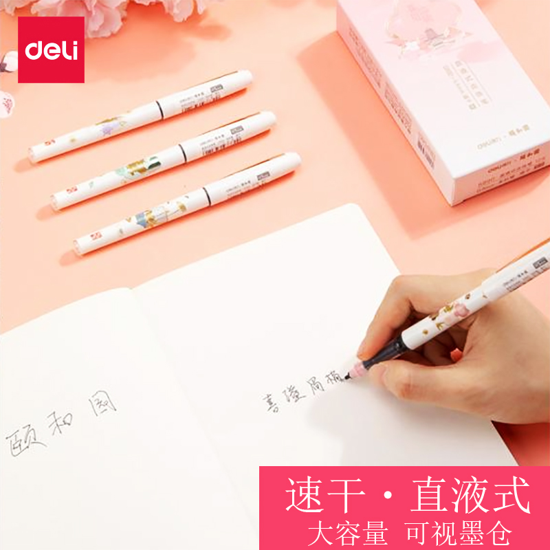 得力直液式走珠笔颐和园巨能写