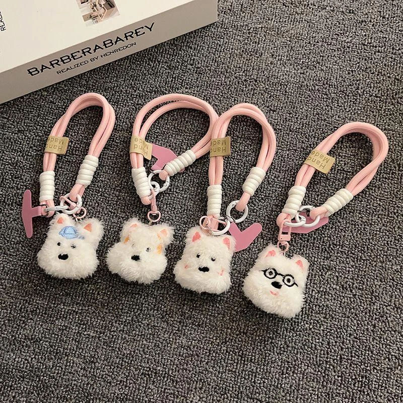 森系帽子西高地公仔短款手机挂绳耐用结实编织带挂链创意钥匙