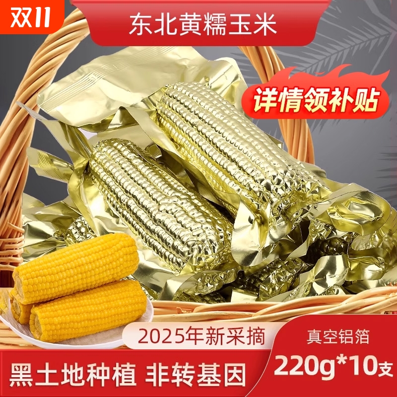 东北黄糯玉米铝箔真空包装低脂甜糯玉米大棒粘糯加热即食真空装