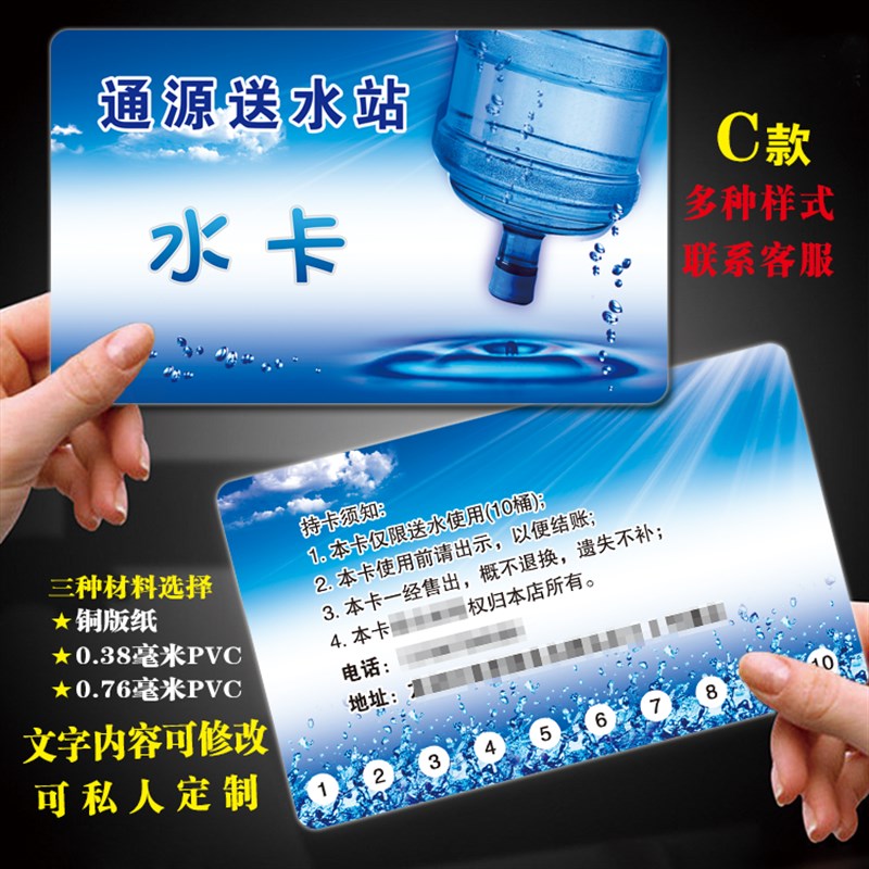 送水卡水票纯净水桶装水会员卡制作定做次卡塑料打孔纸质 pvc