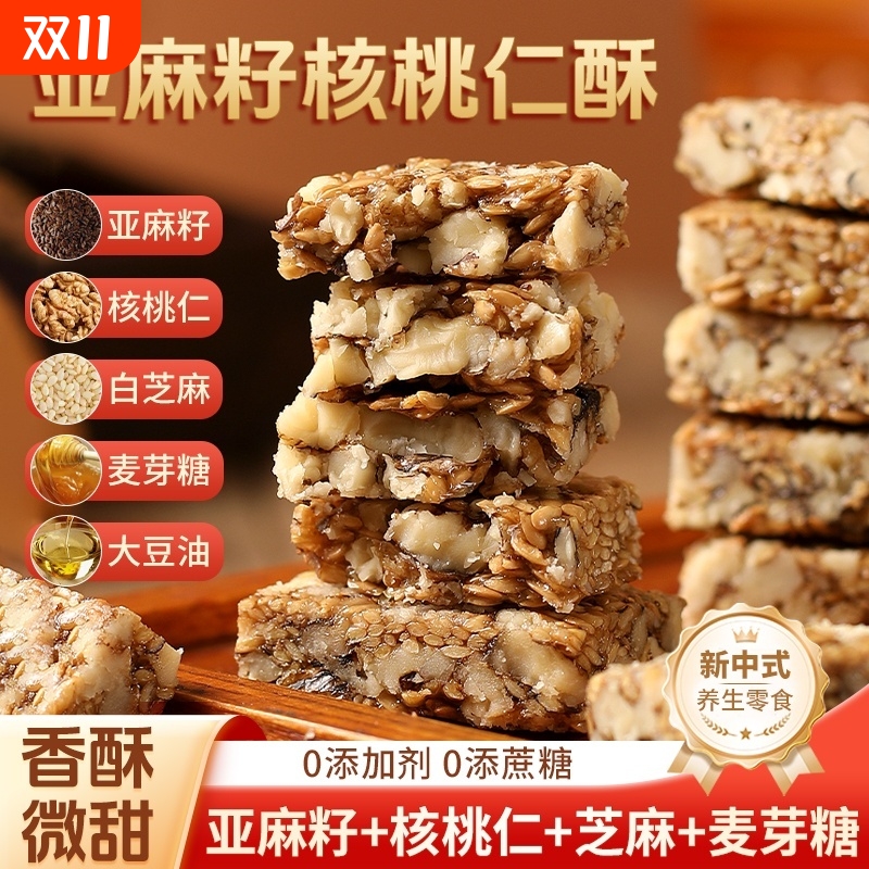 半价抢80包亚麻籽核桃酥无加蔗糖代餐抗饿便秘坚果解馋小零食18包