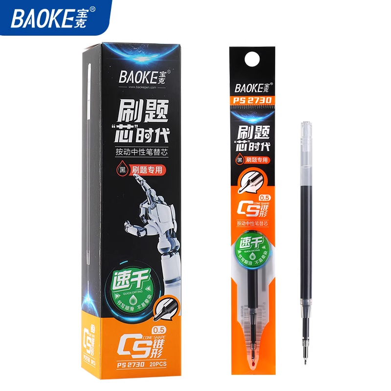 宝克CS锥形笔头按动笔芯黑色替芯刷题按动中性笔替芯按压笔芯273