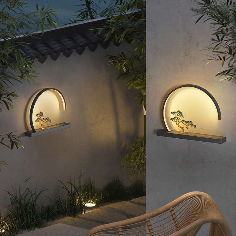 太阳能户外防水壁灯别墅庭院迎客松新中式入户灯玄关灯外墙壁挂灯