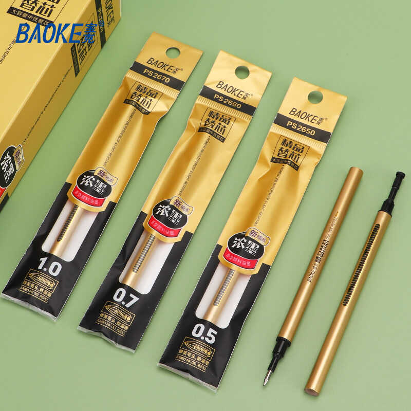 宝克大容量笔芯黑色0.5/0.7/1.0mm中性笔芯子弹头顺滑替