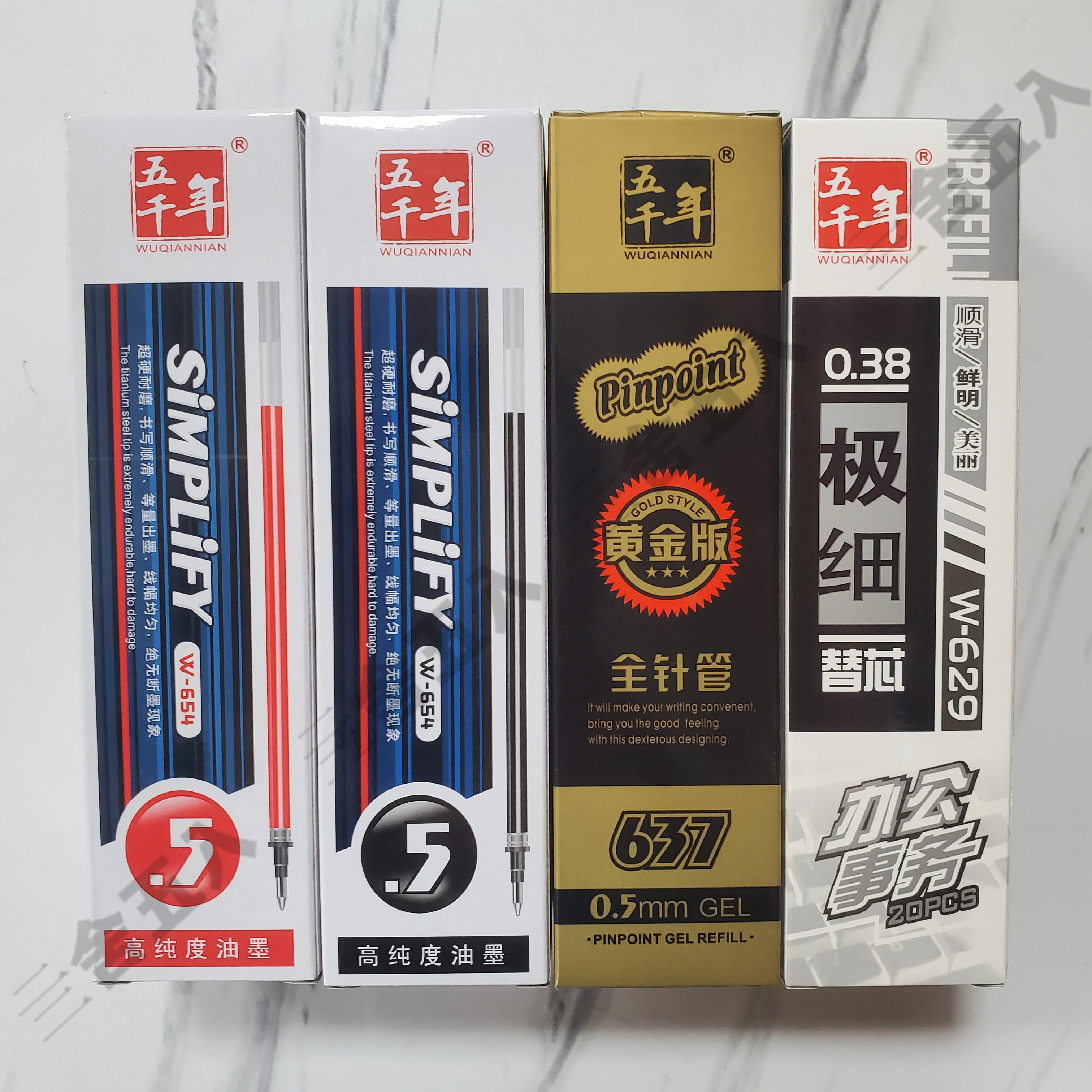五千年笔芯0.5子弹头顺滑0.38针管头黑红蓝墨蓝色签字中性笔替