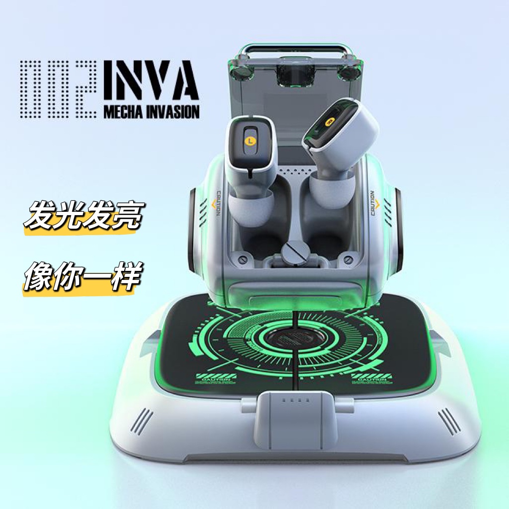 机械入侵太空舱无线蓝牙耳机赛博朋克发光无线充电潮玩重装机甲风