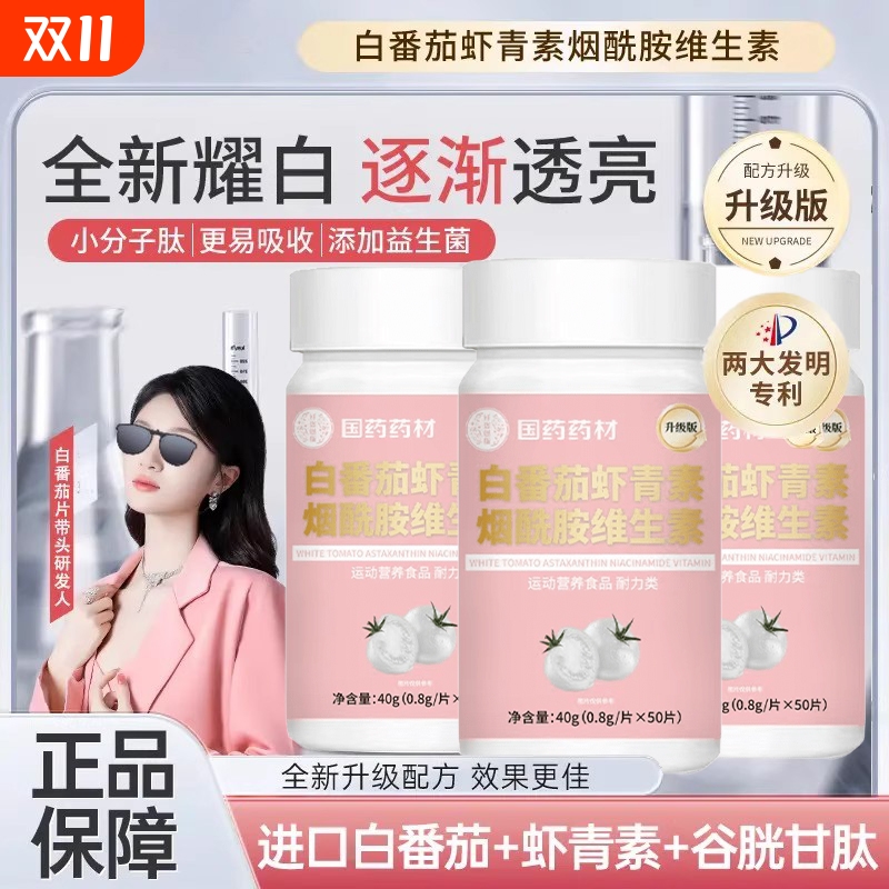 白白片白番茄虾青素烟酰胺口服维生素丸全身正品旗舰店搭美白内服