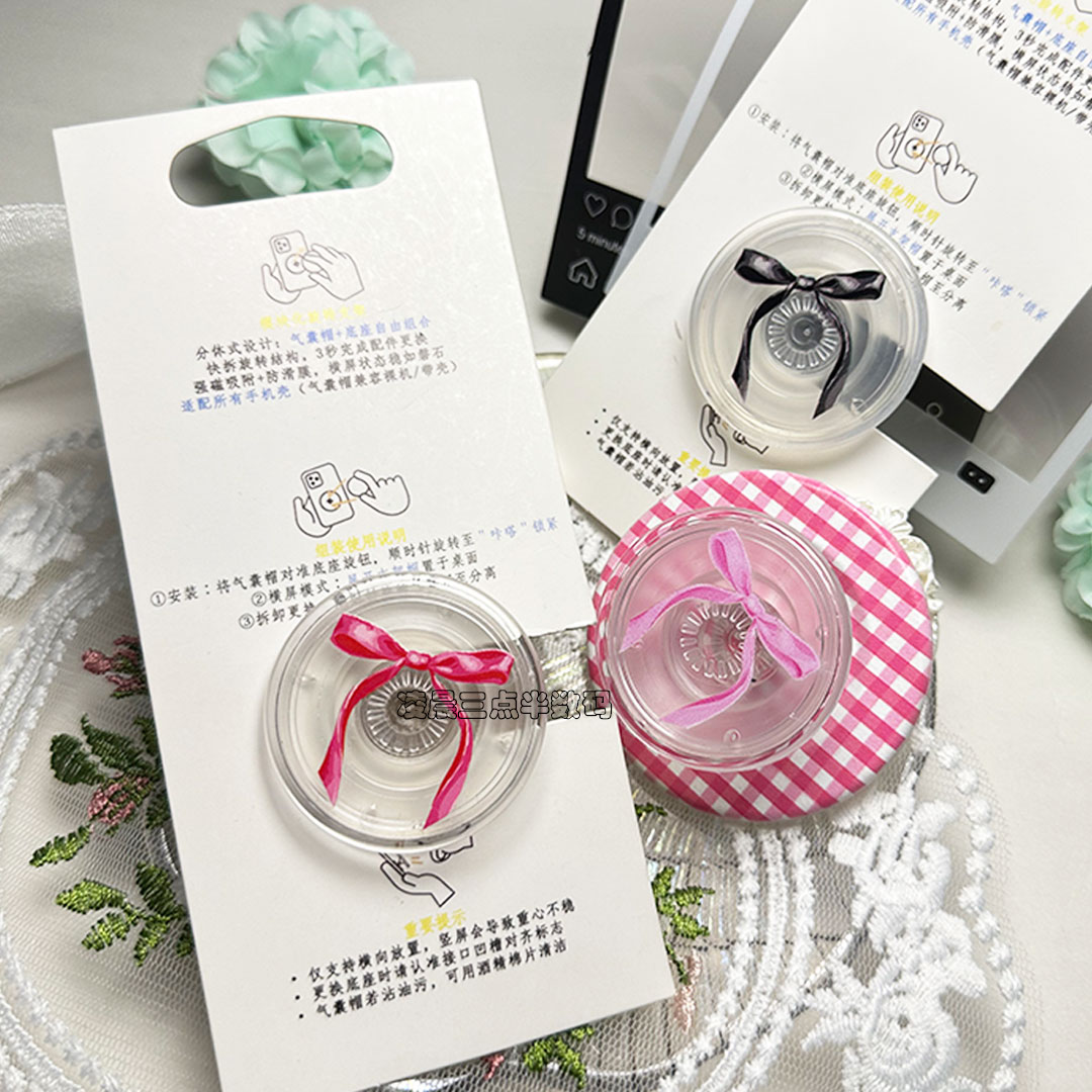 泡泡骚手机磁吸支架通用蝴蝶结啪嗒气囊推拉平面印花底盘少女