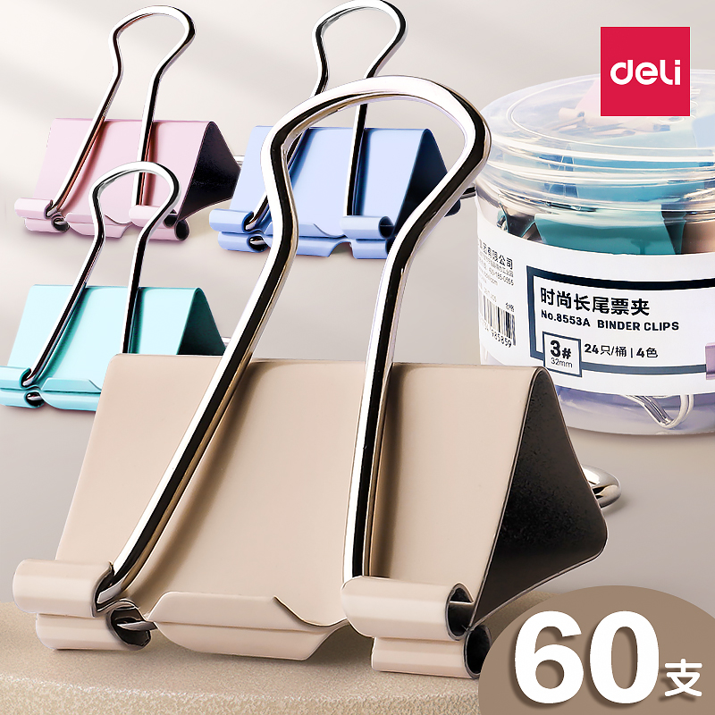 得力长尾夹文件小夹子大号彩色长尾夹票夹燕尾夹凤尾夹小号黑鱼尾夹蝴